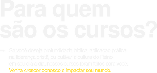 Temos como visão formar discípulos e líderes que manifestam o Reino de Deus para transformar a Terra, através do amor de Cristo, verdade da Palavra e poder do Espírito Santo.